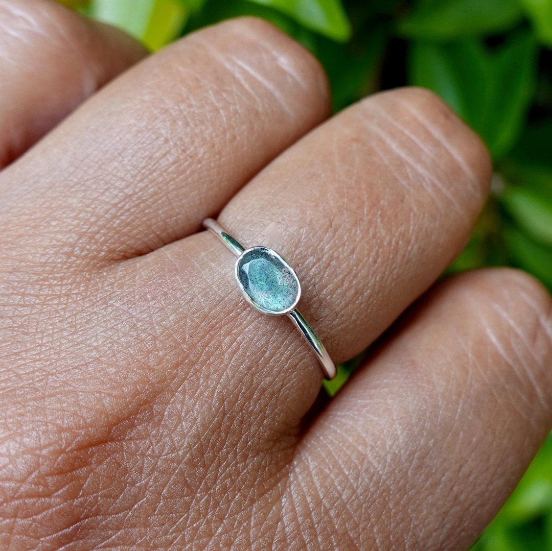 Buy Dainty Labradorite Ring Facetted Horizontal Gemstone Stacking Online In India Etsy